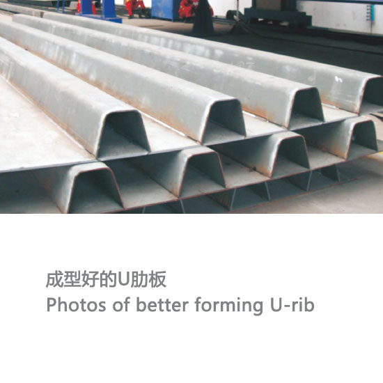隨著大型鋼結(jié)構(gòu)橋梁工程的日益增多,橋面U肋板單元的生產(chǎn)制備因其批量大、工期緊、成型及焊接質(zhì)量要求高,實(shí)現(xiàn)自動化生產(chǎn)的必要性越發(fā)顯現(xiàn)。我司在為山海關(guān)橋梁廠、武船重工、上海振華港機(jī)、中泰橋梁等國內(nèi)多家橋梁生產(chǎn)廠家提供了各類橋面板單元生產(chǎn)設(shè)備。橋面板單元結(jié)構(gòu)如下圖: